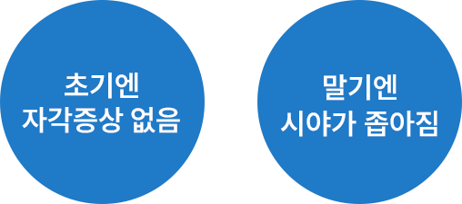 초기에는 자각 증상이 없다가 말기에 시야가 터널을 통해서 보는 것 처럼 좁아집니다.