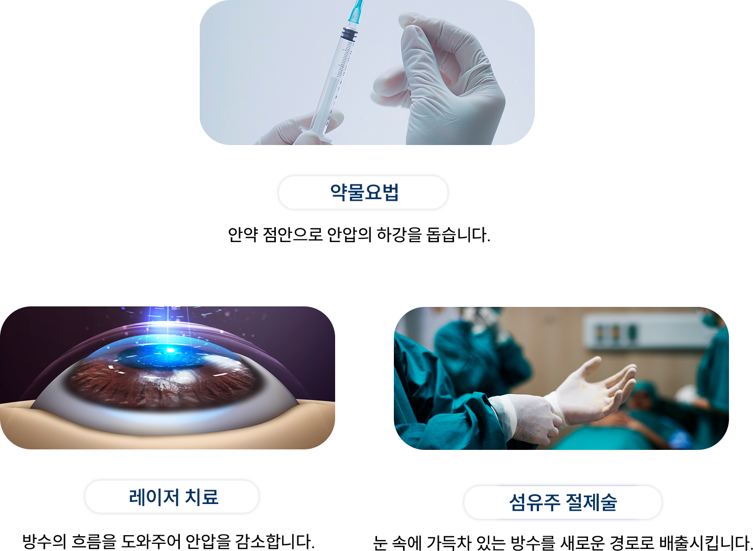 안약 점안으로 안압의 하강을 돕습니다.